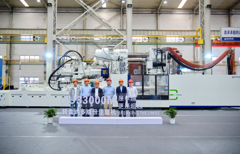 5月9日,JU33000M转盘式多组份注塑机交付仪式顺利举行。此次交付的海天JU系列注塑机锁模力达3300吨,转盘最大容模直径达3.1米,转盘最大承重达28吨,刷新全球转盘式多组份注塑机记录,标志着海天转盘式多组份注塑机的研发制造能力再上新台阶,具有里程碑意义。