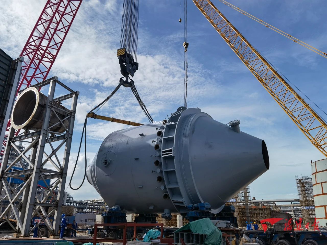 全球最大丙烷脱氢产品分离塔(首台套)的吊装过程