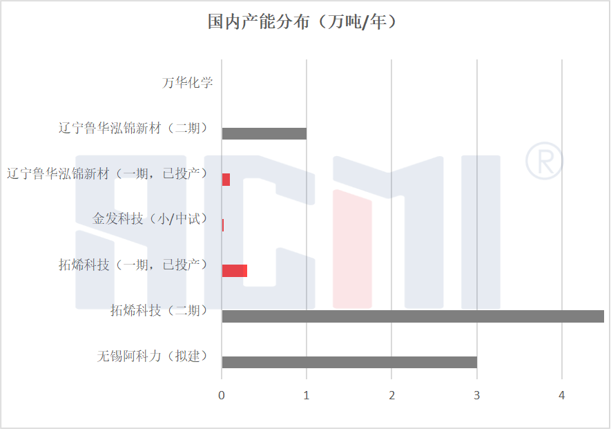 目前,国内仅拓稀科技(点击跳转)以及辽宁鲁华泓锦新材料科技有限公司(点击跳转)实现千吨级工业化量产。除此之外,阿科力、金发科技、万华化学在这一领域也均有布局: