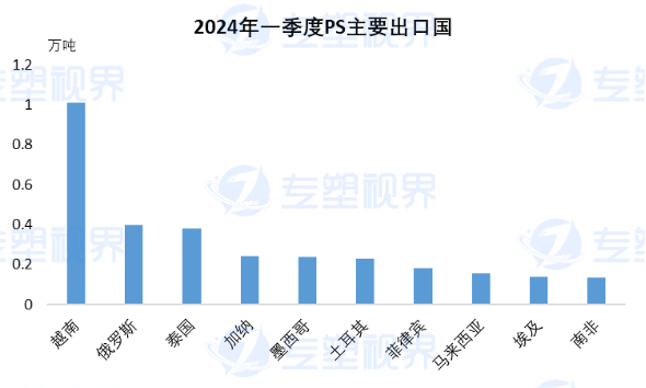而从2024年一季度出口国来看,越南、俄罗斯、泰国、加纳等国家为我国PS主要出口地,其中土耳其排名在第六位,中国一季度对土耳其PS出口总量为0.23万吨,占一季度出口总量的5.23%,整体来看不管是从总量还是从占比来看,土耳其对中国PS反倾销对国内PS市场影响不大。