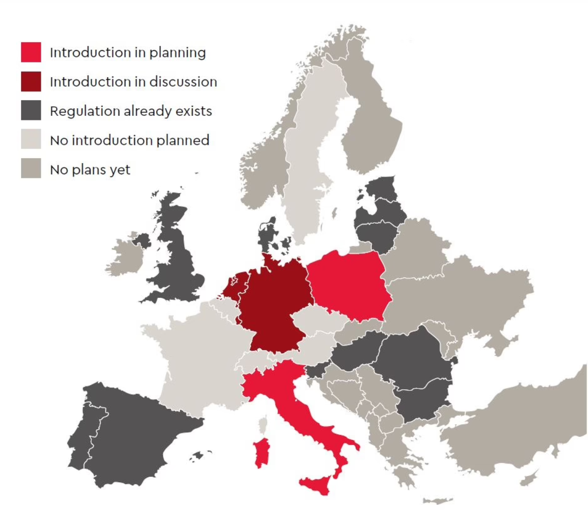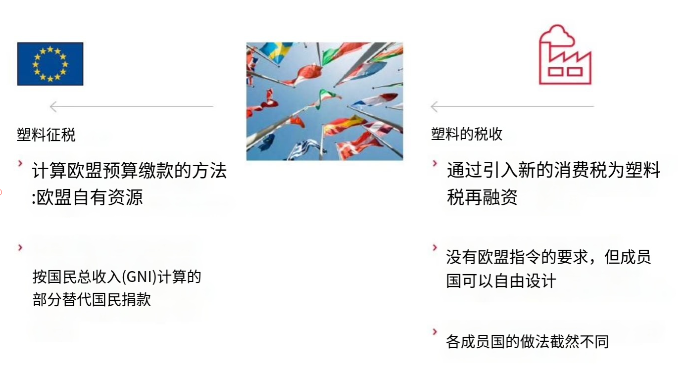 每个成员国都必须缴纳税款,税款金额为每公斤 0.80 欧元的税率乘以未回收塑料包装废弃物的重量。虽然一些成员国目前正从其国家预算中支付税款,但一些成员国已经对塑料产品征收(或正在考虑征收)新的税款、关税、收费、费用或捐款,或者已经扩大(或正在考虑扩大)对塑料产品征税的现有计划。此外,一些非欧盟的欧洲国家也开始针对塑料产品的使用,以减少塑料垃圾并转向循环经济模式。