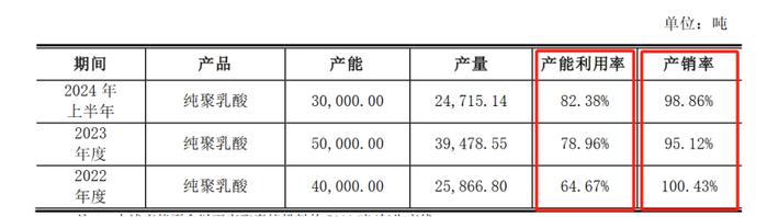 据悉,近年来,海正生材产能利用率走高的同时,产销率呈现震荡走低趋势。2022年至2024年上半年,其产能利用率分别为64.67%、78.96%和82.38%;同期,该公司产销率分别为100.42%、95.12%和98.86%。
