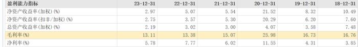 为积极抢占市场,海正生材对产品价格进行一定幅度的调整,导致海正生材的主营业务盈利水平连年下降。2020年至2023年,该公司毛利率分别为25.98%、15.07%、13.38%和13.11%。截至2024年上半年,该公司毛利率为13.14%,同比下降0.6个百分点。