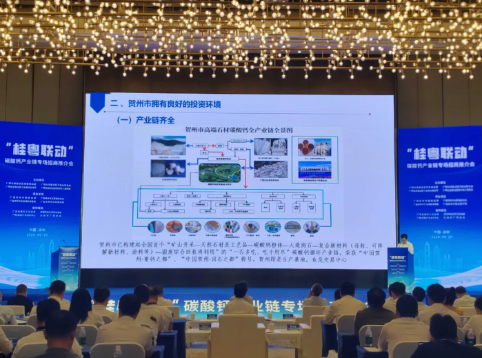 9月20日,一场聚焦于碳酸钙产业链的“桂粤联动”专场招商推介会在广东省深圳市成功举办。在此次推介会上,贺州市碳酸钙产业项目签约仪式成为亮点,共签约了包括“高分子新材料产业基地项目”在内的三个重大项目,累计投资总额高达16亿元。