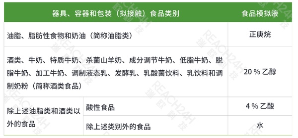 首先,修订中变动较为明显的是对蒸发残留实验以及萃取或溶出试验中食品类别的划分和对应模拟液的调整,调整后的食品类型描述见下表。