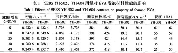 由表1还可以发现,在各SEBS用量相同情况下,YH-6O4T各项性能均好于YH-502T。
