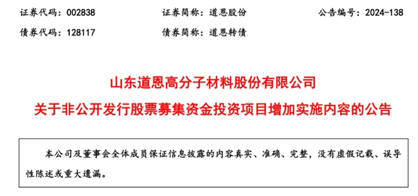 12月16日,道恩股份发布公告,公司拟用自有资金进行项目的改扩建。