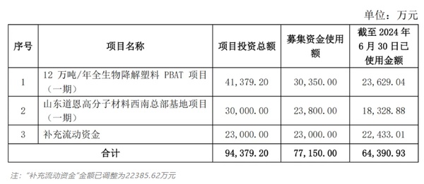 据悉,道恩股份2022年被核准定增非公开发行股票不超过 122773504 股人民币普通股,道恩股份本次实际净募资额为760009182.74元。募资额用途和使用情况如下所示:
