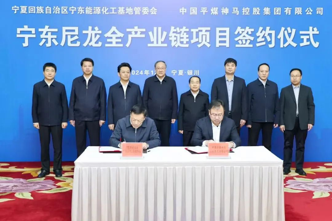 12月28日,据宁夏日报消息,宁夏回族自治区党委书记李邑飞,自治区党委副书记、自治区主席张雨浦在银川会见中国平煤神马集团党委书记、董事长李毛,并共同见证宁东尼龙全产业链项目签约。