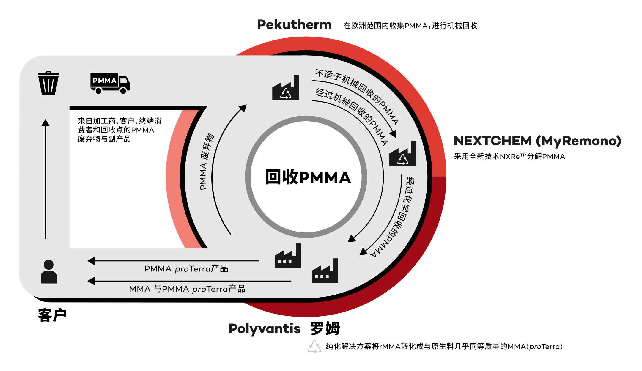 四家企业携手在欧洲范围内成立PMMA可持续循环利用联盟:德国Pekutherm、意大利MAIRE集团NEXTCHEM(可持续技术解决方案事业部,通过其子公司MyRemono参与)、德国罗姆以及POLYVANTIS。