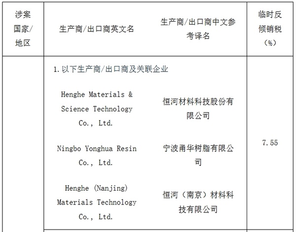 2025年2月21日,韩国企划财政部发布第2025-5号公告,决定自即日起对原产于中国大陆和中国台湾地区的石油树脂(Petroleum Resin)征收为期四个月的临时反倾销税(税率详见附表),其中,中国大陆税率为4.55%~7.55%,措施有效期至2025年6月20日。本案涉及韩国税号3911.10.1000项下的产品,但是软化点超过130℃的C9石油树脂不适用上述临时反倾销税。