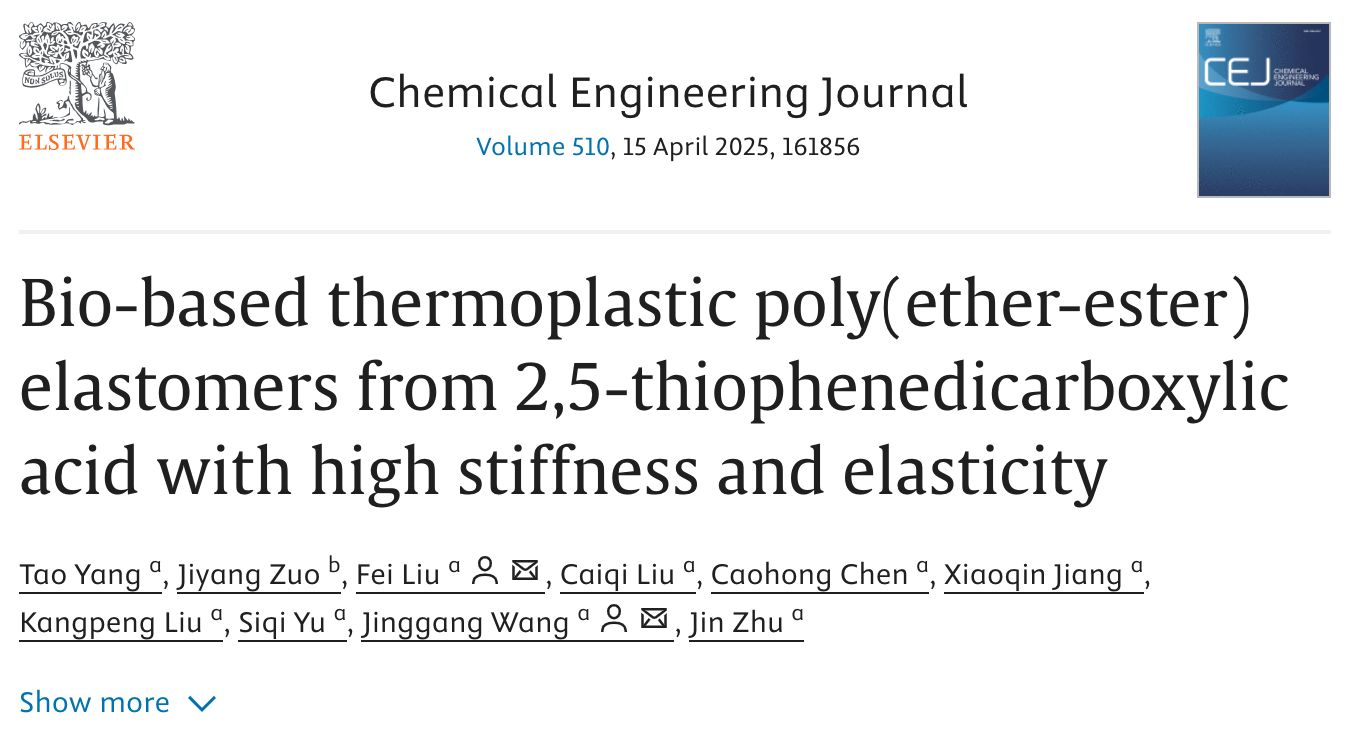 中国科学院宁波材料技术与工程研究所生物基高分子材料团队致力于高性能生物基热塑性聚酯弹性体设计制备研究,基于生物基芳香二甲酸原料,设计制备了多种新型高性能生物基热塑性聚酯弹性体。