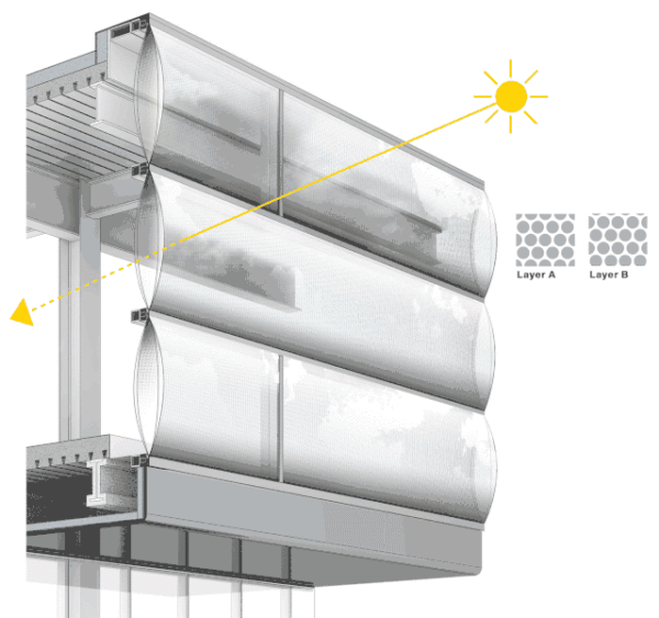 太阳能控制:ETFE是一种非常透明的材料,可以改变围护系统的美学和热性能。这将有助于提高建筑物内部的舒适度,可避免热量吸收,红外线和有害的紫外线辐射,同时享受自然采光。