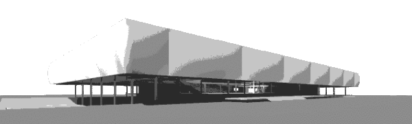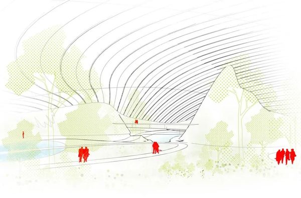 四个烟囱中的一系列微型风力涡轮机利用建筑物抽风的动力,并利用它为空气处理机组发电,以保持气垫不断膨胀。设计使外部场地区域成为公园的自然延伸,其功能和服务已整合到景观设计中。形状和材料将让人联想到一个废弃的工业领域,这些年来,这些工业领域已经自然地融入并与绿色融为一体。