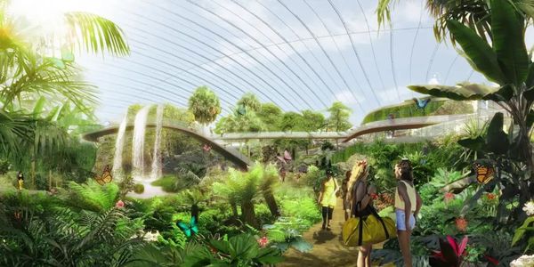法国公司Coldefy&Associates设计了世界上最大的一个屋顶下的热带温室。温室位于法国 Pas-de-Calais,占地面积20,000平方米,其中包括热带森林,乌龟海滩,可养亚马逊鱼的游泳池和一条长一公里的步行道。该生物群落旨在提供一个“和谐的避风港”,游客可以立即沉浸在一个圆顶屋顶下看似自然的环境中。