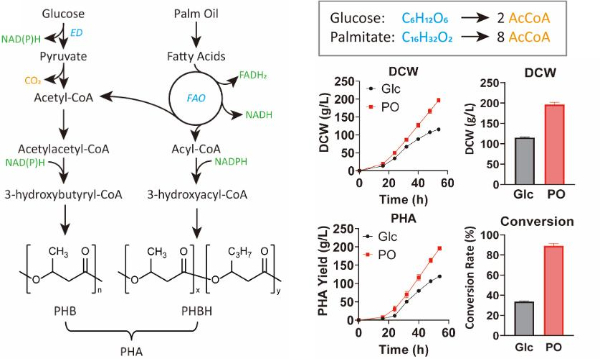 PHA合成的糖基碳源路线和油基碳源路线对比