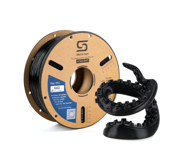 Siraya Tech的新款TPU 64D材料,硬度达到肖氏64D,适用于那些既需要弹性体材料优势,又需要更高刚性、耐磨性和结构稳定性的应用。这款耗材的设计不仅能够承受严苛的机械使用,而且据称比许多其他较软的TPU材料打印更轻松、更顺畅、更耐堵塞。