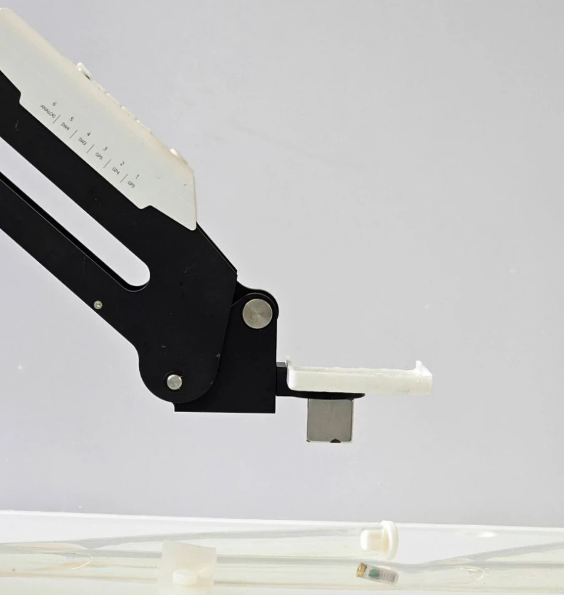 MEDS设备外形类似于一支微型笔或注射器。内部填充有一种由海藻提取的海藻酸钠凝胶,以及活性人体胃成纤维细胞——后者负责生成胃部结缔组织。在凝胶后方设有弹簧装载的推杆,由聚乳酸(PLA)材料制成的塞子阻挡推杆前进。出墨端则是一个镀金的钕铁硼环形磁体喷嘴,“前后”结构明确。