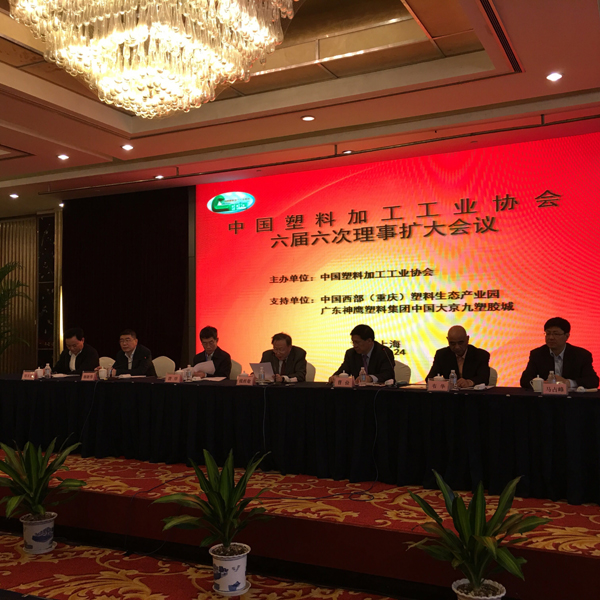 4月24日,“中国塑料加工工业协会六届六次理事扩大会议”在上海召开,中国轻工业联合会副会长、中国塑料加工工业协会理事长钱桂敬,中国塑料加工工业协会常务副理事长曹俭、秘书长马占峰,浙江省塑料行业协会会长韩新伟,广东塑料行业协会会长符岸,江苏省塑料加工工业协会会长韦华和山东塑料行业协会会长刘丰田出席会议并在主席台就坐,来自全国各地塑料行业协会的领导、专家及企业家代表共200余人参加会议。会议由钱桂敬理事长主持。