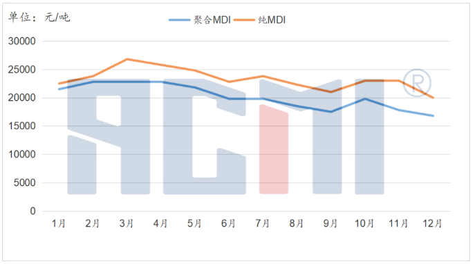 8月份:聚合MDI 18500元/吨;纯MDI 22300元/吨。